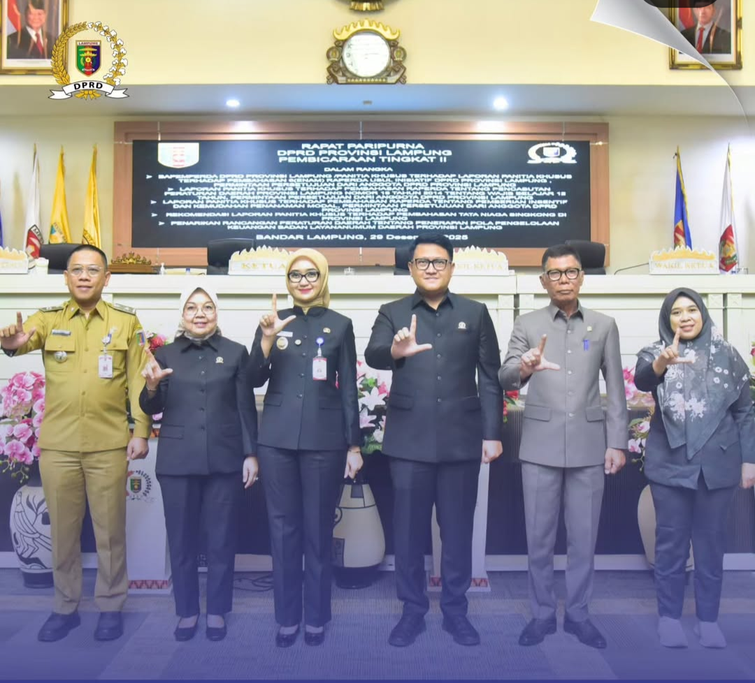 Bandar Lampung — Dewan Perwakilan Rakyat Daerah (DPRD) Provinsi Lampung menyelenggarakan Rapat Paripurna di Ruang Sidang DPRD Provinsi Lampung, Senin (29/12/2025).